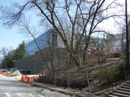 The site of Gates Hall, looking southeast.