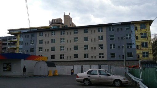 The project is an interesting little case study of how maximum height isn’t necessarily optimal. The zoning allows four floors; they want to serve 70-80% area median income, which requires 18 bedrooms for economic feasibility at this site. But to have four floors, the materials need to be fire-rated, and the units would need either emergency exit stairs, or an elevator. Since it’s a small building lot, an elevator would eat into the square footage of units, about a bedroom per floor, so there’s no net gain in rentable space with a fourth floor, but there would be an increased project cost. One could save costs by putting in the stairs vs. the elevator, but the fourth floor units would be harder to fill because they would pose greater access difficulties – ask around and see how many people want to walk up four flights everyday. This is actually one of the major reasons why the Village Solars in Lansing are also three floors, the expense of elevators would have driven their budget higher than the mid-market segment Lifestyle Properties wanted to serve.