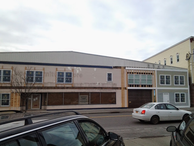 A peek through the back door showed drywall being hung on the wood framing, and some utilities rough-in still going in. The project is a gut renovation of a former furniture store and warehouse, so the owners had quite a task with rebuilding the interior.