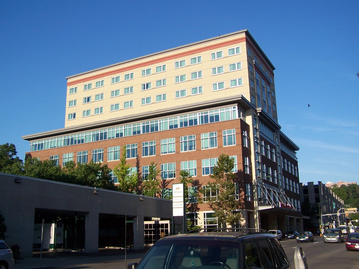 In the early 2000s, their working titles were the “Cayuga Green at Six Mile Creek” and “Ciminelli/Cornell Office/Hotel” projects, and collectively they were called the “Downtown Development Project“. Cayuga Green has heavy city involvement. At the time, the swath of land surrounding the library on its block was all city-owned surface parking, with the helix for the Green Street parking garage to its east (it was actually kinda neat looking for a parking garage ramp; a photo can be found here). The first phase of Cayuga Green would also be the lynch pin for the Ciminelli project; the city would convey the parking lots to the IURA, who could sell them off and partner with a developer to build a parking garage to serve the Ciminelli building and some of Cayuga Green. This phase would become the current Cayuga Street garage, which opened in June 2005 with 700 spaces, 34,000 sq ft of first floor retail, and a nearly $20 million price tag. The 185,000 sq ft Ciminelli project was constructed concurrently and also opened in 2005 as Seneca Place on the Commons, with the Hilton Garden Inn for its hotel occupant, Cornell as the primary office tenant, and retail space that would fill up over the next couple years.